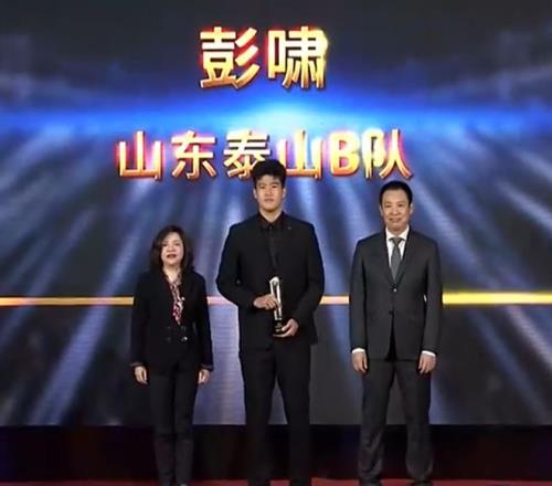 彭啸获得“中乙最佳青年球员”奖杯。