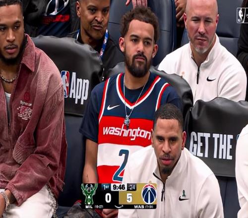 你看!华盛顿奇才的中场休息期间,球队为约翰・沃尔举办了特别纪念仪式。而在奇才替补席上,特雷・杨的身影格外醒目:他特意穿上了沃尔效力奇才时的 2 号球衣,用最质朴的方式向前辈