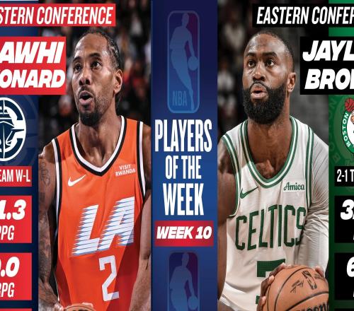 官方:东部杰伦布朗和西部伦纳德当选本周周最佳球员